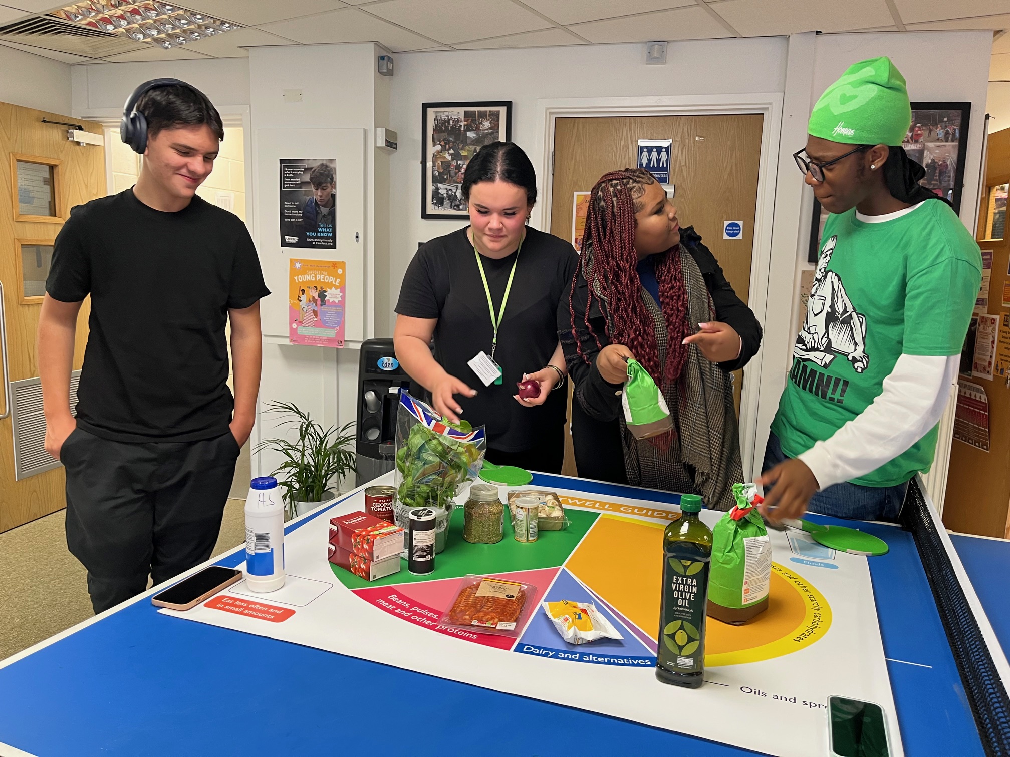 The project encouraged young people to think about what makes a balanced meal. Before they began cooking, they laid out their ingredients on a huge Eatwell Guide, which shows the proportions of different food groups you should try to eat.